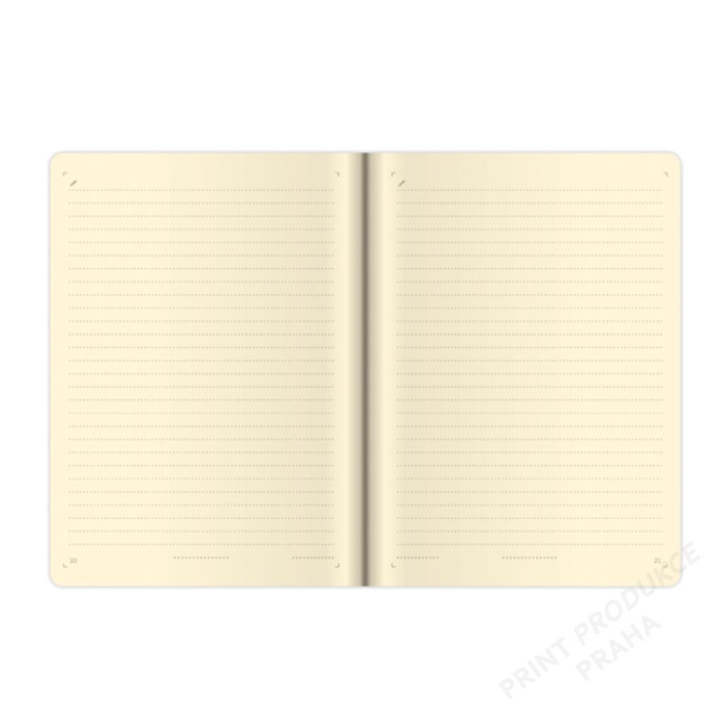 Rozměr: 145 x 205 mm - Formát: A5 - Papír: linkovaný - Počet stran: 192 - Barva bloku: krémová - Obsahuje: papírovou kapsu, chytré samolepky, - gumičku na zavírání a poutko na propisku - - Vhodný pro sleporažbu a potisk.
