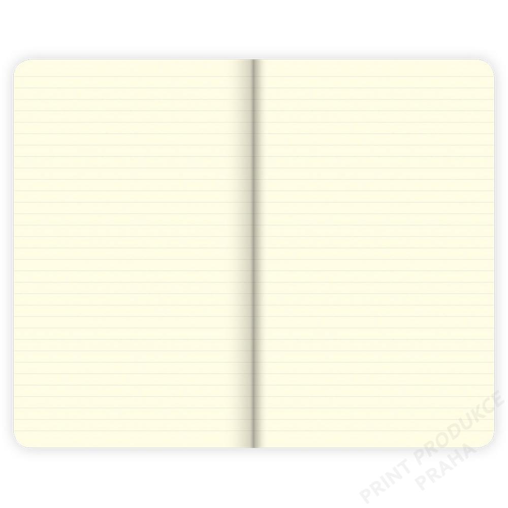 Notes B6 - linkovaný - rozměr diáře - 10,5 x 15,8 cm - počet stran - 172 - papír - 100 g/m2, žlutý - vazba - tuhá knižní s gumičkou + vnitřní kapsa na navštívenky.