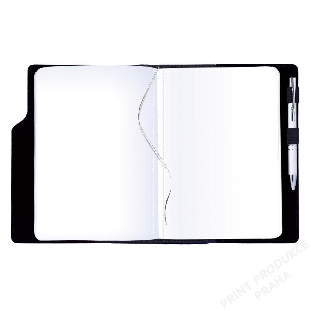 Formát: B5 - Rozměr: 170 x 240 mm - Barva bloku: bílá - Záložka: bílá - Papír: nelinkovaný s perforací - Počet stran: 144 - Vazba: šitá V8 (tkaná niť) - Materiál vnější: pěnová výplň desky potažená hladkou koženkou - s natištěnou grafikou - Materiál vnitřní: černý samet - - Součástí notesu je poutko na propisku a kovová propiska.