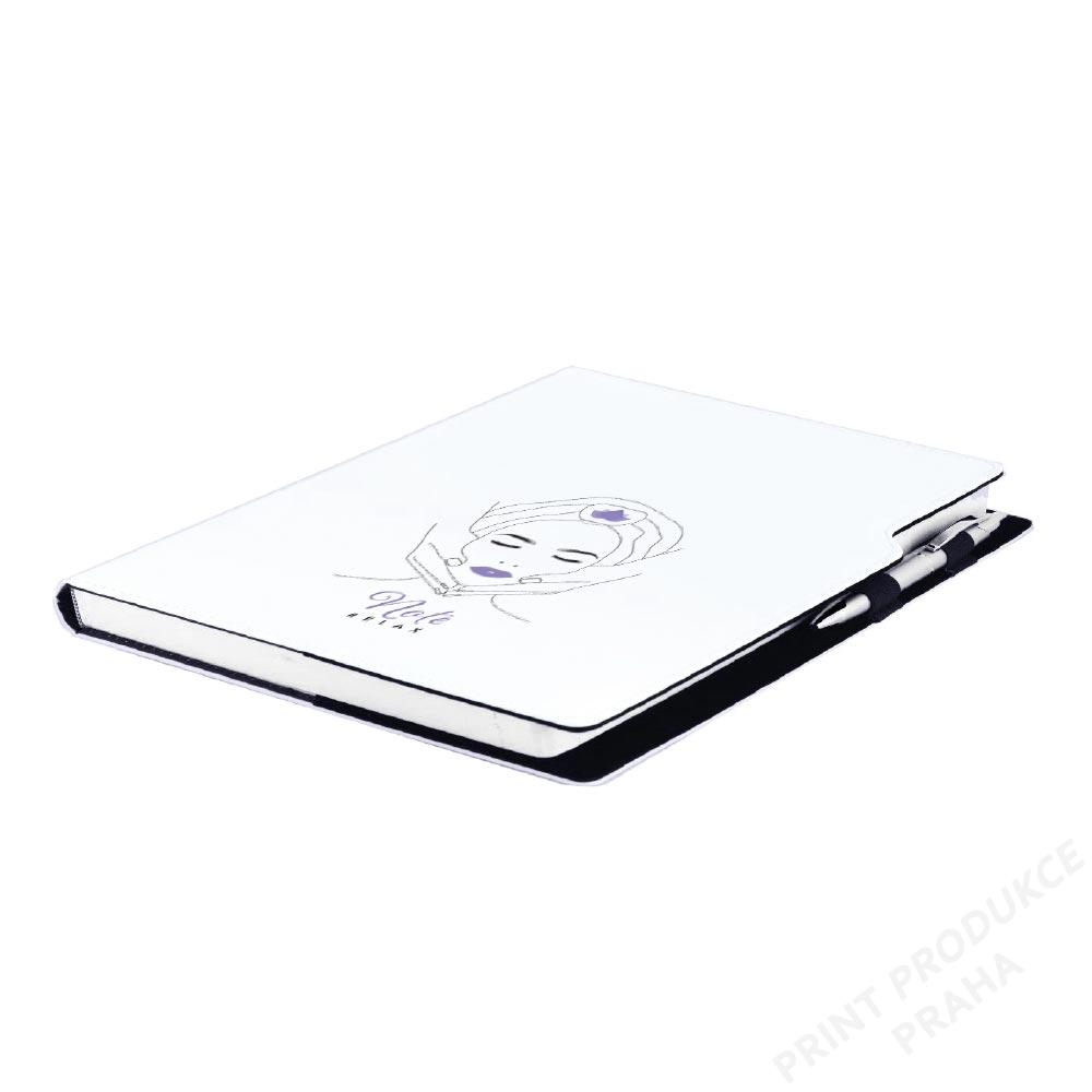 Formát: A4 - Rozměr: 210 x 293 mm - Barva bloku: bílá - Záložka: bílá - Papír: tečkovaný s perforací - Počet stran: 144 - Vazba: šitá V8 (tkaná niť) - Materiál vnější: pěnová výplň desky potažená hladkou koženkou s natištěnou grafikou - Materiál vnitřní: černý samet - - Součástí notesu je poutko na propisku a kovová propiska.