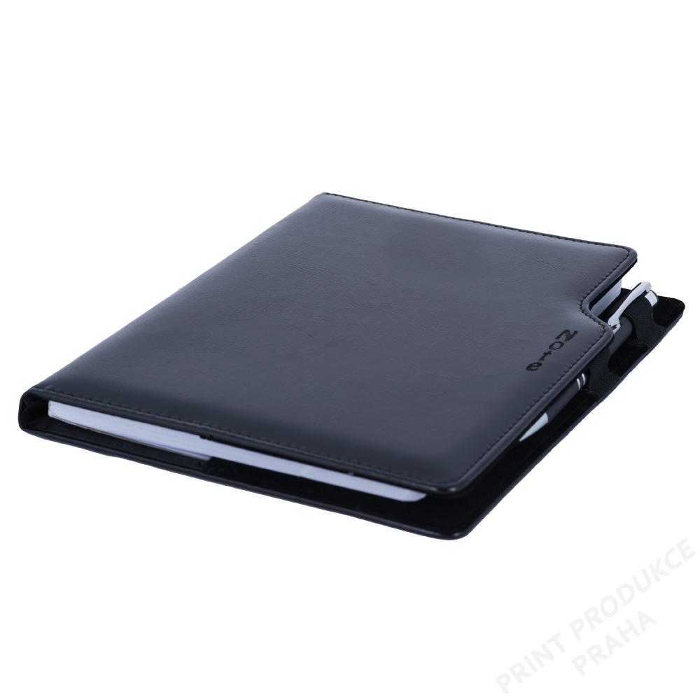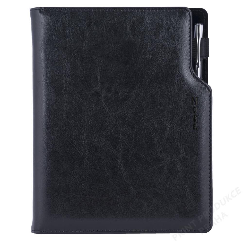 Formát: B5 - Rozměr: 170 x 240 mm - Potahový materiál: lesklá hladká koženka - Vnitřní materiál: černý samet - Barva bloku: bílá - Záložka: bílá - Papír: tečkovaný s perforací - Počet stran: 144 - Vazba: šitá V8 (tkaná niť) - Součástí notesu je propiska