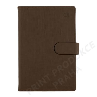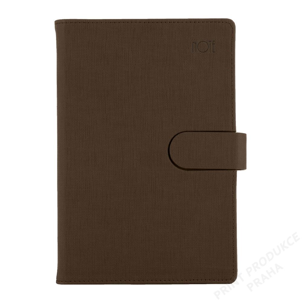 Formát: A5 - Rozměr: 143 x 205 mm - Potahový materiál: vzorovaná matná koženka - Barva bloku: bílá - Záložka: bílá - Papír: tečkovaný s perforací - Počet stran: 144 - Vazba: šitá V8 (tkaná niť) - Součástí notesu je poutko na propisku a magnetické zavírání.