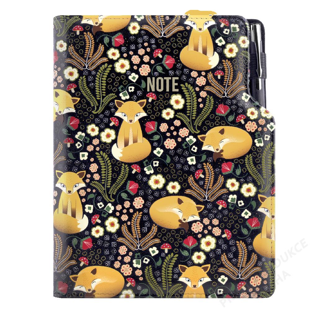 Notes - zápisník DESIGN A5 čtverečkovaný - černá - Liška