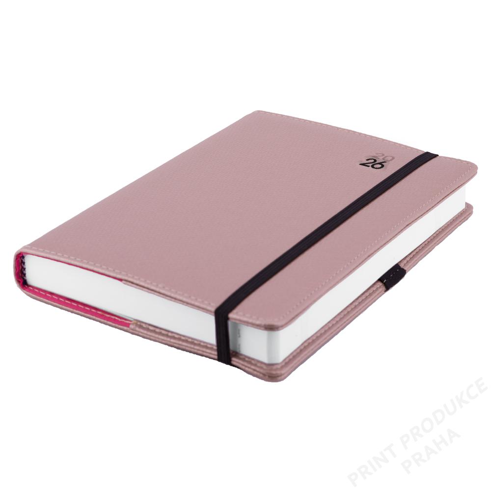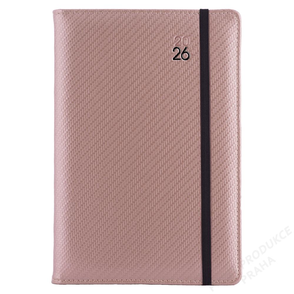 Rozsah: 350 stran - Vazba: šitá V8 (tkaná nit) - Kalendárium: denní české jmenné - Jazykové mutace: CZ, SK, EN, DE, RU - Barva bloku: bílá - Barva písma: modrá a červená - Diář obsahuje: kulaté odtrhávací rožky, bílou záložku, - poutko na propisku a gumičku za zavírání - Materiál: pevné desky potaženy vzorovanou matnou koženkou - - Obsah kalendária: znamení zvěrokruhu, přehledný kalendář, - plánovací kalendář 2026, roční plánovací kalendář CZ a SK, - přehled přiznání a plateb daní CZ a SK, časová pásma, - mezinárodní tel. spojení, CZ křestní jména, poznámky, - státní a církevní svátky ve světě, vzdálenosti v km EU/CZ/SK, - plánovací kalendář 2027, mapy - ČR, SK, Praha, Bratislava. - - Součástí je barevná ražba letopočtu. - Diář je vhodný pro sleporažbu a barevnou ražbu.