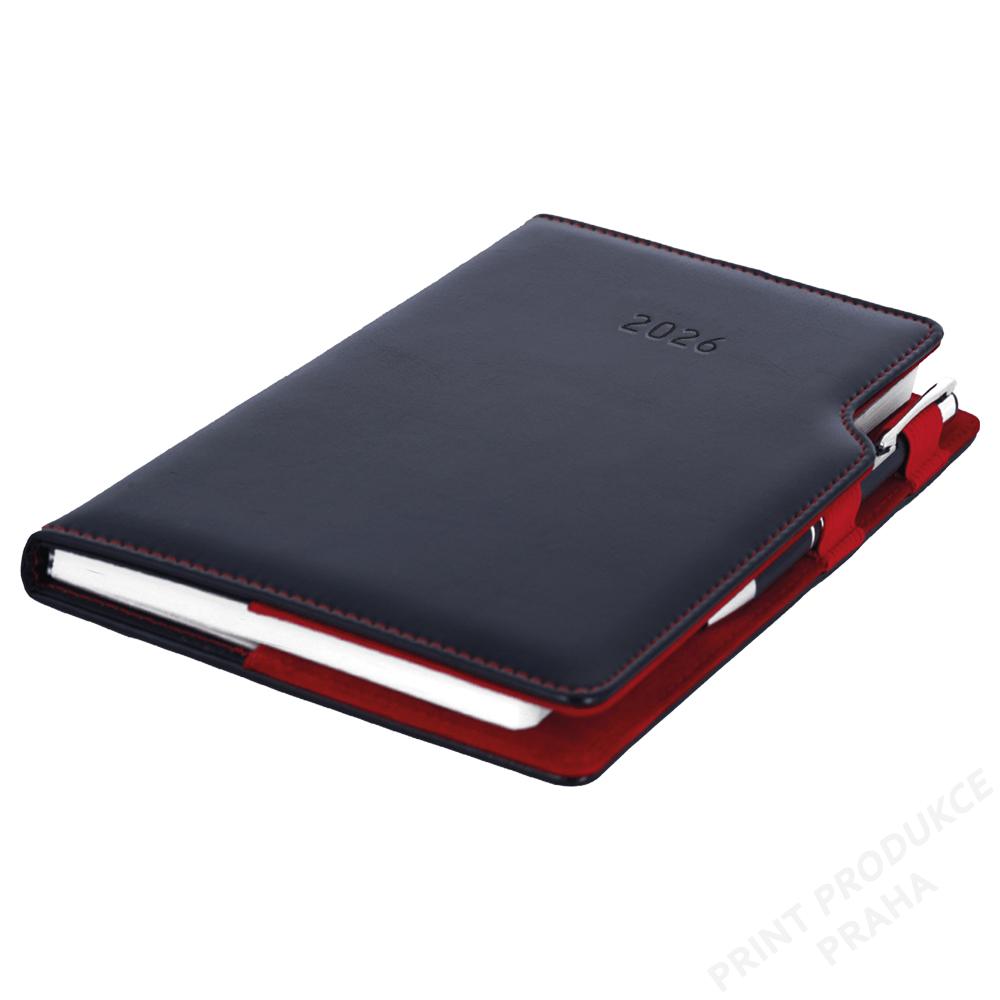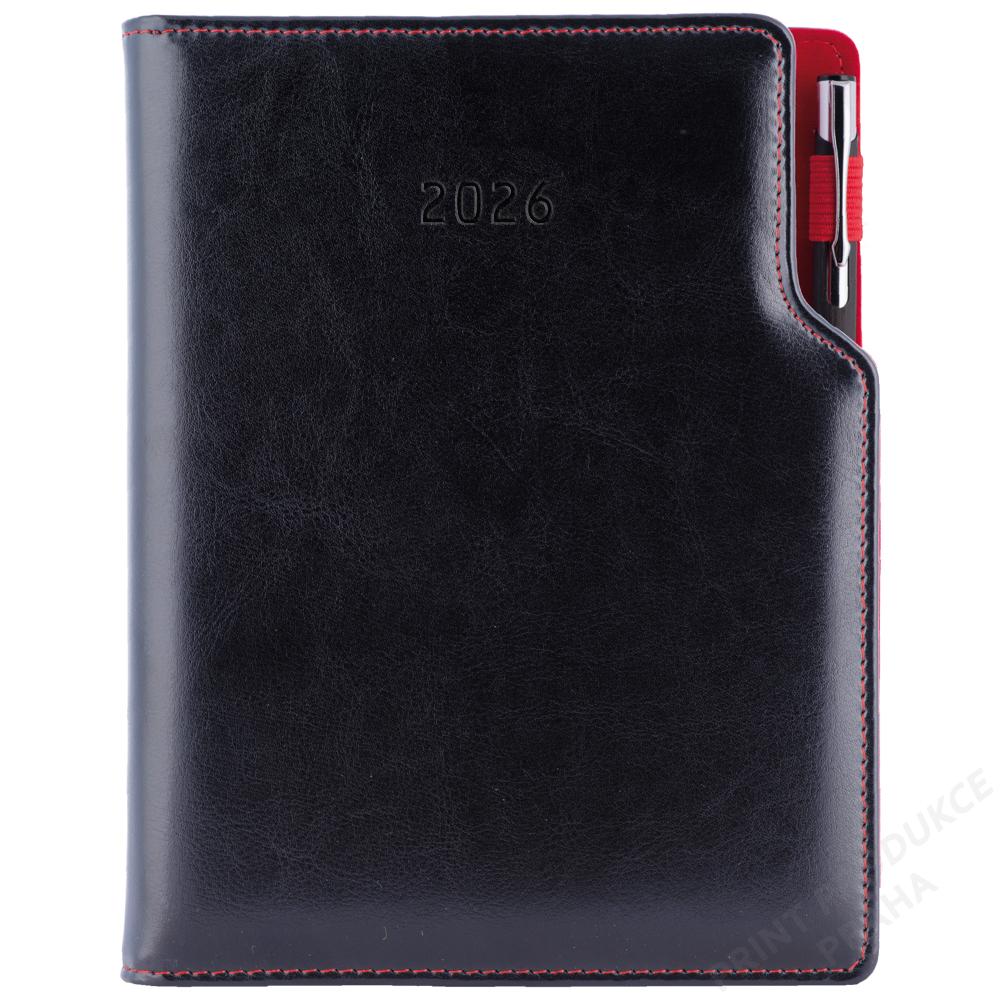 Blok vkládaný do desek diáře - Rozsah: 354 stran - Vazba: šitá V8 (tkaná nit) - Kalendárium: denní slovenské jmenné - Jazykové mutace: SK, CZ, EN, DE, RU - Barva bloku: bílá - Barva písma: modrá a červená - Diář obsahuje: kulaté odtrhávací rožky, bílou záložku a propisku - Materiál vnější: pěnová výplň desky potažená lesklou hladkou koženkou - Materiál vnitřní: červený samet - - Obsah kalendária: znamení zvěrokruhu, přehledný kalendář, plánovací kalendář 2026, - roční plánovací kalendář SK a CZ, přehled přiznání a plateb daní SK a CZ, - mezinárodní tel. spojení, SK křestní jména, časová pásma, - státní a církevní svátky ve světě, vzdálenosti v km EU/SK/CZ, - plánovací kalendář 2027, poznámky, mapy - SK, ČR, Praha, Bratislava. - - Součástí je sleporažba letopočtu. - Diář je vhodný pro ražbu, barevnou ražbu či potisk.