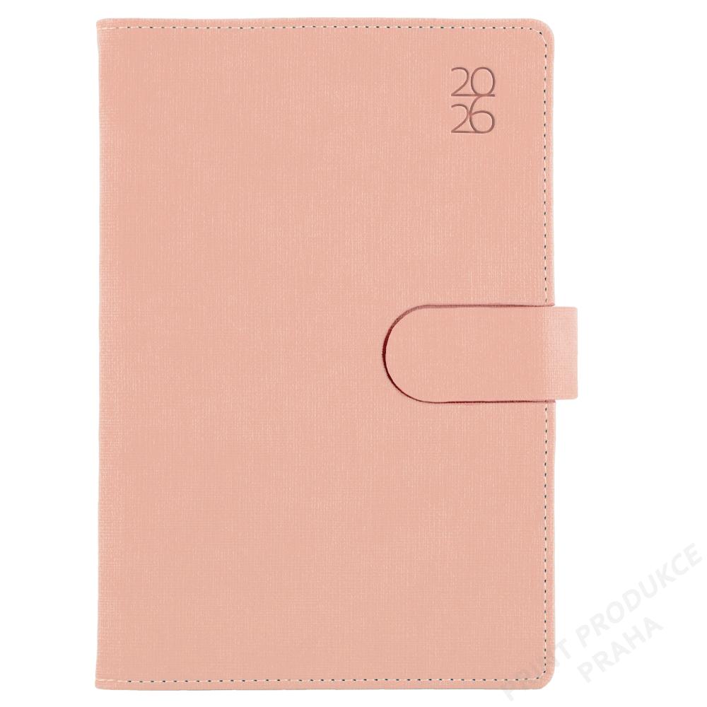 Blok vkládaný do desek diáře - Rozsah: 354 stran - Vazba: šitá V8 (tkaná nit) - Kalendárium: denní slovenské jmenné - Jazykové mutace: SK, CZ, EN, DE, RU - Barva bloku: bílá - Barva písma: modrá a červená - Diář obsahuje: kulaté odtrhávací rožky, bílou záložku, - poutko na propisku a magnetické zavírání - Materiál: pevné desky potaženy vzorovanou matnou koženkou - - Obsah kalendária: znamení zvěrokruhu, přehledný kalendář, - plánovací kalendář 2026, roční plánovací kalendář SK a CZ, - přehled přiznání a plateb daní SK a CZ, časová pásma, - mezinárodní tel. spojení, SK křestní jména, časová pásma, - státní a církevní svátky ve světě, vzdálenosti v km EU/SK/CZ, - plánovací kalendář 2027, mapy - SK, ČR, Praha, Bratislava. - - Součástí je sleporažba letopočtu. - Diář je vhodný pro sleporažbu, ražbu přes folii nebo barevnou ražbu.