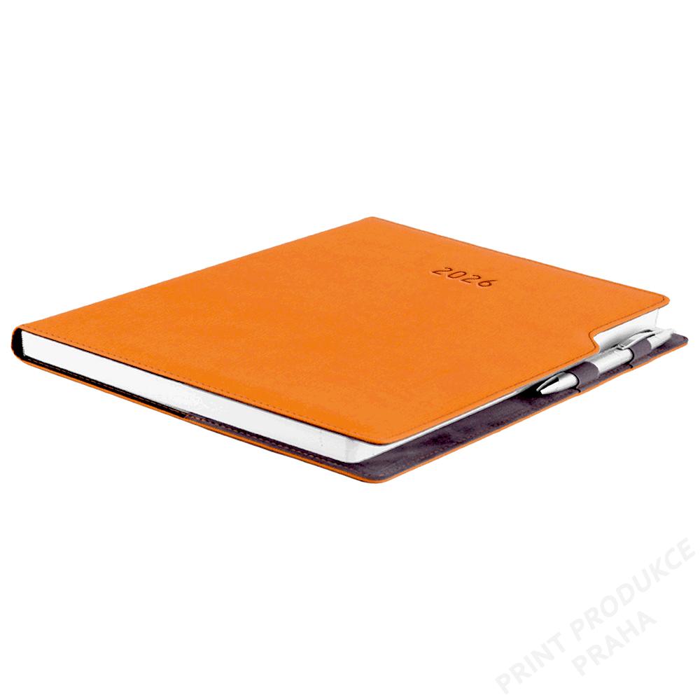 Rozsah: 144 stran - Vazba: šitá V8 (tkaná nit) - Kalendárium: týdenní české a slovenské jmenné - Jazykové mutace: CZ, SK, EN, DE, RU - Barva bloku: bílá - Barva písma: modrá a červená - Diář obsahuje: kulaté odtrhávací rožky, bílou záložku a propisku - Materiál vnější: pěnová výplň desky potažená matnou strukturovanou koženkou - Materiál vnitřní: šedý samet - - Obsah kalendária: znamení zvěrokruhu, přehledný kalendář, plánovací kalendář 2026, - roční plánovací kalendář CZ a SK, přehled přiznání a plateb daní CZ a SK, - mezinárodní tel. spojení, CZ/SK křestní jména, časová pásma, - státní a církevní svátky ve světě, vzdálenosti v km EU/CZ/SK, - plánovací kalendář 2027, poznámky, mapy - ČR, SK, Praha, Bratislava. - - Součástí je sleporažba letopočtu. - Diář je vhodný pro sleporažbu, ražbu přes folii nebo barevnou ražbu. - - SOUČÁSTÍ DIÁŘE JE JINÉ KULIČKOVÉ PERO, NEŽ JE VYOBRAZENO NA FOTKÁCH. - KÓD KULIČKOVÉHO PERA - Isabel B0116411PB2