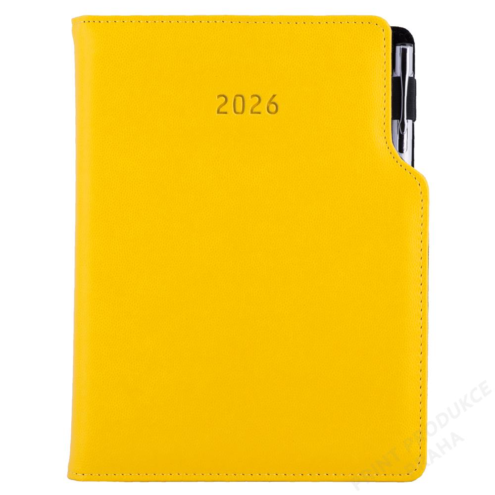 Rozsah: 144 stran - Vazba: šitá V8 (tkaná nit) - Kalendárium: týdenní české a slovenské jmenné - Jazykové mutace: CZ, SK, EN, DE, RU - Barva bloku: bílá - Barva písma: modrá a červená - Diář obsahuje: kulaté odtrhávací rožky, bílou záložku a propisku - Materiál vnější: pěnová výplň desky potažená lesklou strukturovanou koženkou - Materiál vnitřní: černý samet - - Obsah kalendária: znamení zvěrokruhu, přehledný kalendář, plánovací kalendář 2026, - roční plánovací kalendář CZ a SK, přehled přiznání a plateb daní CZ a SK, - mezinárodní tel. spojení, CZ/SK křestní jména, časová pásma, - státní a církevní svátky ve světě, vzdálenosti v km EU/CZ/SK, - plánovací kalendář 2027, poznámky, mapy - ČR, SK, Praha, Bratislava. - - Součástí je sleporažba letopočtu. - Diář je vhodný pro ražbu, barevnou ražbu či potisk.