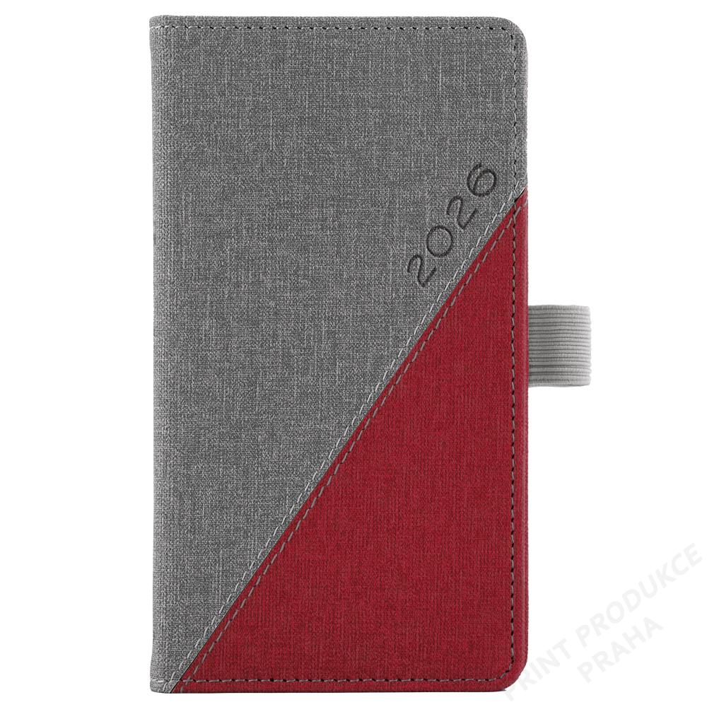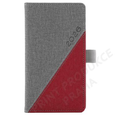 Rozsah: 140 stran - Vazba: šitá V8 (tkaná nit) - Kalendárium: týdenní české jmenné - Jazykové mutace: CZ, SK, EN, DE, RU - Barva bloku: bílá - Barva písma: modrá a červená - Potahový materiál: vzorovaná matná koženka - Diář obsahuje: kulaté odtrhávací rožky, - bílou záložku a poutko na propisku - - Obsah kalendária: znamení zvěrokruhu, přehledný kalendář, - plánovací kalendář 2026, roční plánovací kalendář CZ a SK, - přehled přiznání a plateb daní CZ a SK, mezinárodní tel. spojení, - státní a církevní svátky ve světě, CZ křestní jména, - vzdálenosti v km EU/CZ/SK, plánovací kalendář 2027, - poznámky, časová pásma. - - Diář je vhodný pro sleporažbu a barevnou ražbu.