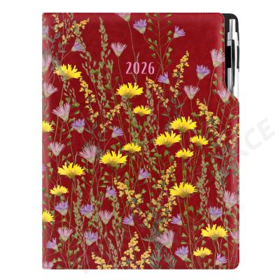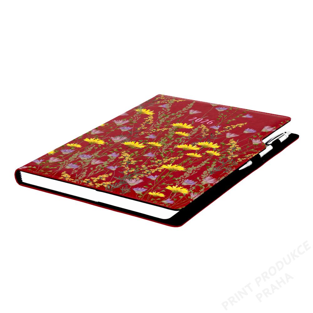 Formát: A4 - Rozměr bloku: 210 x 293 mm - Rozsah: 144 stran - Vazba: šitá V8 (tkaná nit) - Kalendárium: týdenní české a slovenské - Jazykové mutace: CZ, SK, EN, DE, RU - Barva bloku: bílá - Barva písma: modrá a červená - Diář obsahuje: kulaté odtrhávací rožky, bílou záložku a propisku - Materiál vnější: pěnová výplň desky potažená hladkou koženkou s natištěnou grafikou - Materiál vnitřní: černý samet - - Obsah kalendária: znamení zvěrokruhu, přehledný kalendář, plánovací kalendář 2026, - roční plánovací kalendář CZ a SK, přehled přiznání a plateb daní CZ a SK, - mezinárodní tel. spojení, CZ/SK křestní jména, časová pásma, - státní a církevní svátky ve světě, vzdálenosti v km EU/CZ/SK, - plánovací kalendář 2027, poznámky, mapy - ČR, SK, Praha, Bratislava. - - -
