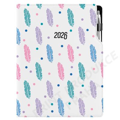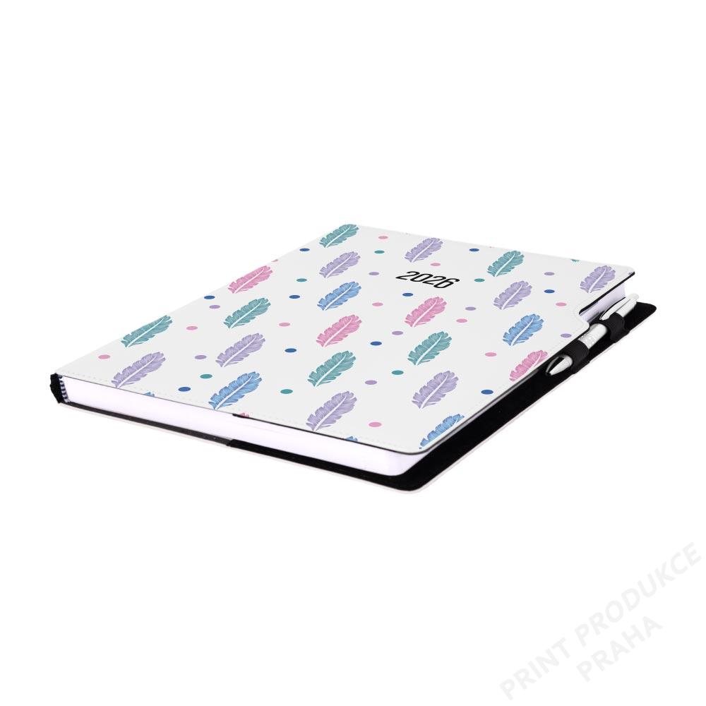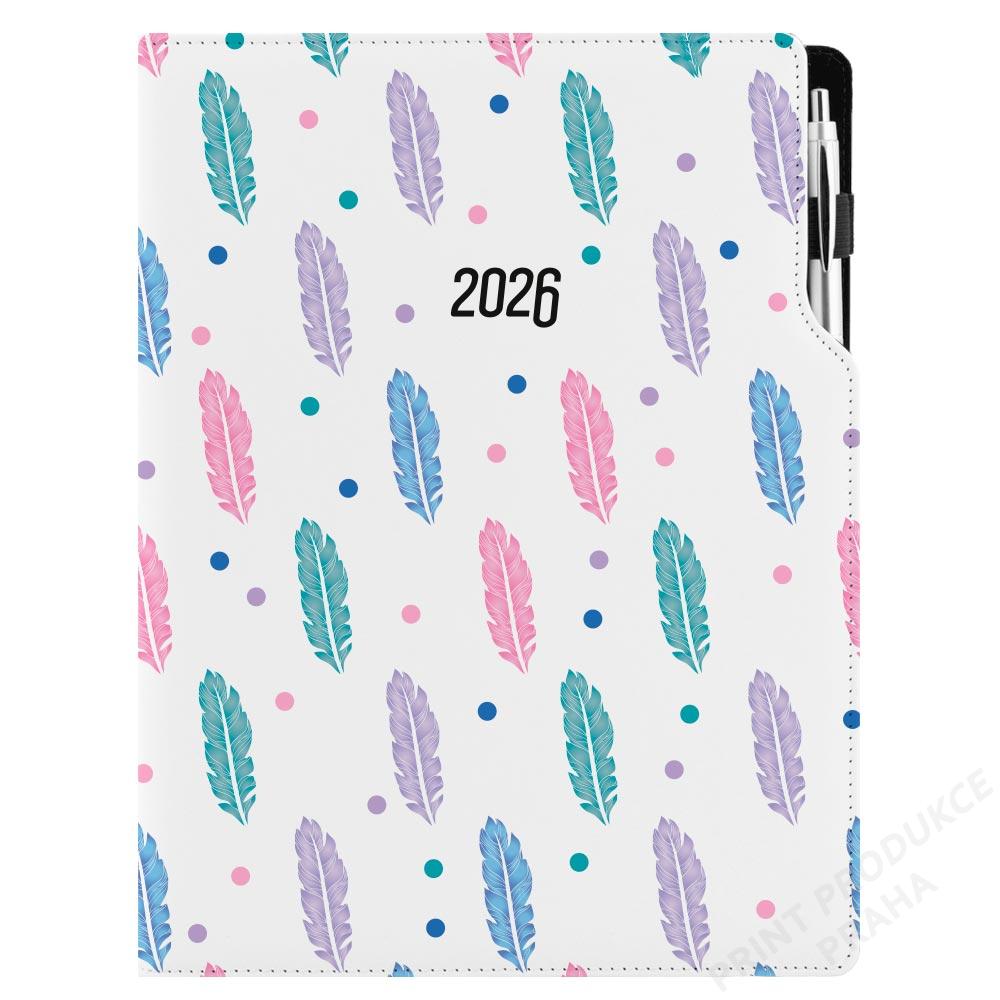 Formát: A4 - Rozměr bloku: 210 x 293 mm (Blok vkládaný do desek diáře) - Rozsah: 144 stran - Vazba: šitá V8 (tkaná nit) - Kalendárium: týdenní české a slovenské - Jazykové mutace: CZ, SK, EN, DE, RU - Barva bloku: bílá - Barva písma: modrá a červená - Diář obsahuje: kulaté odtrhávací rožky, bílou záložku a propisku - Materiál vnější: pěnová výplň desky potažená hladkou koženkou s natištěnou grafikou - Materiál vnitřní: černý samet - - Obsah kalendária: znamení zvěrokruhu, přehledný kalendář, plánovací kalendář 2026, - roční plánovací kalendář CZ a SK, přehled přiznání a plateb daní CZ a SK, - mezinárodní tel. spojení, CZ/SK křestní jména, časová pásma, - státní a církevní svátky ve světě, vzdálenosti v km EU/CZ/SK, - plánovací kalendář 2027, poznámky, mapy - ČR, SK, Praha, Bratislava. - - -