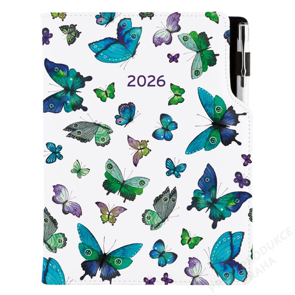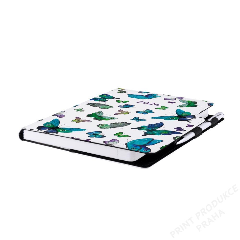 Diář DESIGN týdenní B5 2026 - Motýli modří