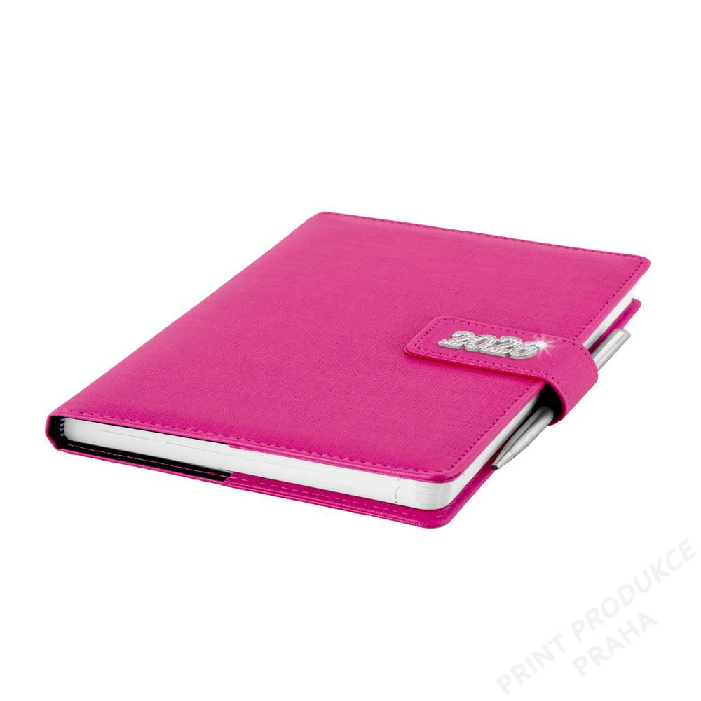 Blok vkládaný do desek diáře - Rozsah: 142 stran - Vazba: šitá V8 (tkaná nit) - Kalendárium: týdenní slovenské jmenné - Jazykové mutace: SK, CZ, EN, DE, RU - Barva bloku: bílá - Barva písma: modrá a červená - Diář obsahuje: kulaté odtrhávací rožky, bílou záložku, - kovovou propisku a magnetické zavírání - Potahový materiál: koženka - - Obsah kalendária: znamení zvěrokruhu, přehledný kalendář, - plánovací kalendář 2026, roční plánovací kalendář SK a CZ, - přehled přiznání a plateb daní SK a CZ, - mezinárodní tel. spojení, SK křestní jména, časová pásma, - státní a církevní svátky ve světě, vzdálenosti v km EU/SK/CZ, - plánovací kalendář 2027, poznámky, mapy - SK, ČR, Praha, Bratislava. - - Šperk letopočtu je vyroben z niklu a v něm jsou vsazeny krystalky. - Diář je balen v dárkové krabičce vystalné saténem.