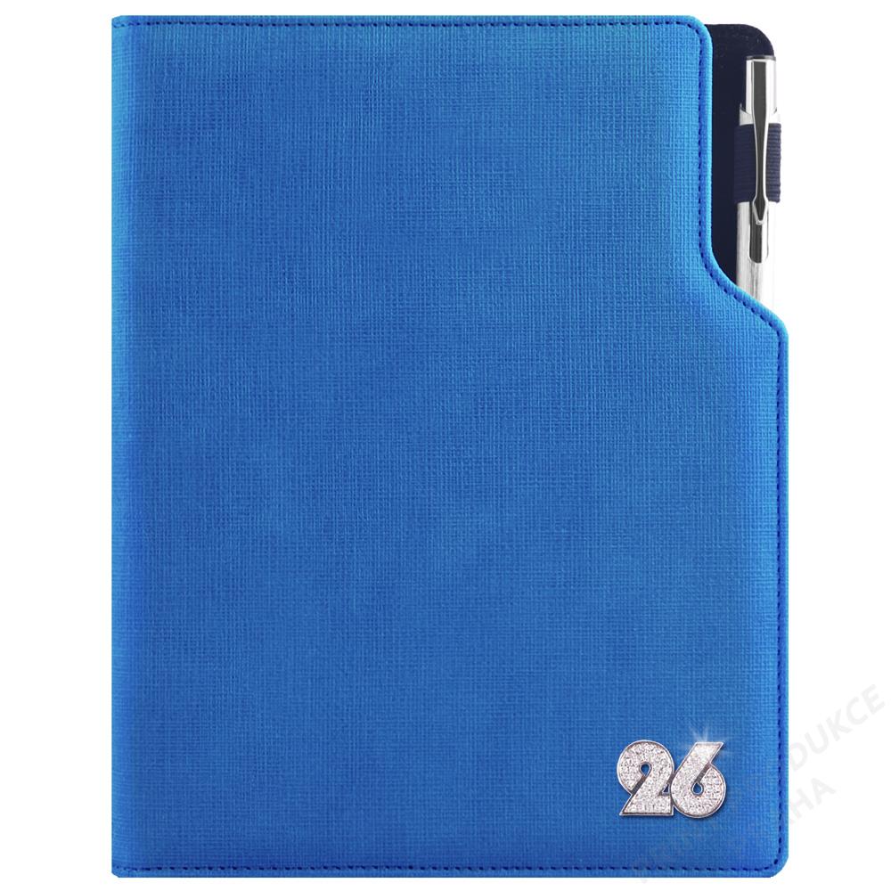 Blok vkládaný do desek diáře - Rozsah: 142 stran - Vazba: šitá V8 (tkaná nit) - Kalendárium: týdenní slovenské jmenné - Jazykové mutace: SK, CZ, EN, DE, RU - Barva bloku: bílá - Barva písma: modrá a červená - Diář obsahuje: kulaté odtrhávací rožky, bílou záložku a propisku - Materiál vnější: pěnová výplň desky potažená matnou strukturovanou koženkou - Materiál vnitřní: černý samet - - Obsah kalendária: znamení zvěrokruhu, přehledný kalendář, plánovací kalendář 2026, - roční plánovací kalendář SK a CZ, přehled přiznání a plateb daní SK a CZ, - mezinárodní tel. spojení, SK křestní jména, časová pásma, - státní a církevní svátky ve světě, vzdálenosti v km EU/SK/CZ, - plánovací kalendář 2027, poznámky, mapy - SK, ČR, Praha, Bratislava. - - Součástí je křišťálový letopočet, který je vyroben z niklu a v něm jsou vsazeny krystalky. - Diář je balen v dárkové krabičce vystalné saténem. - - Diář je vhodný pro sleporažbu a barevnou ražbu.