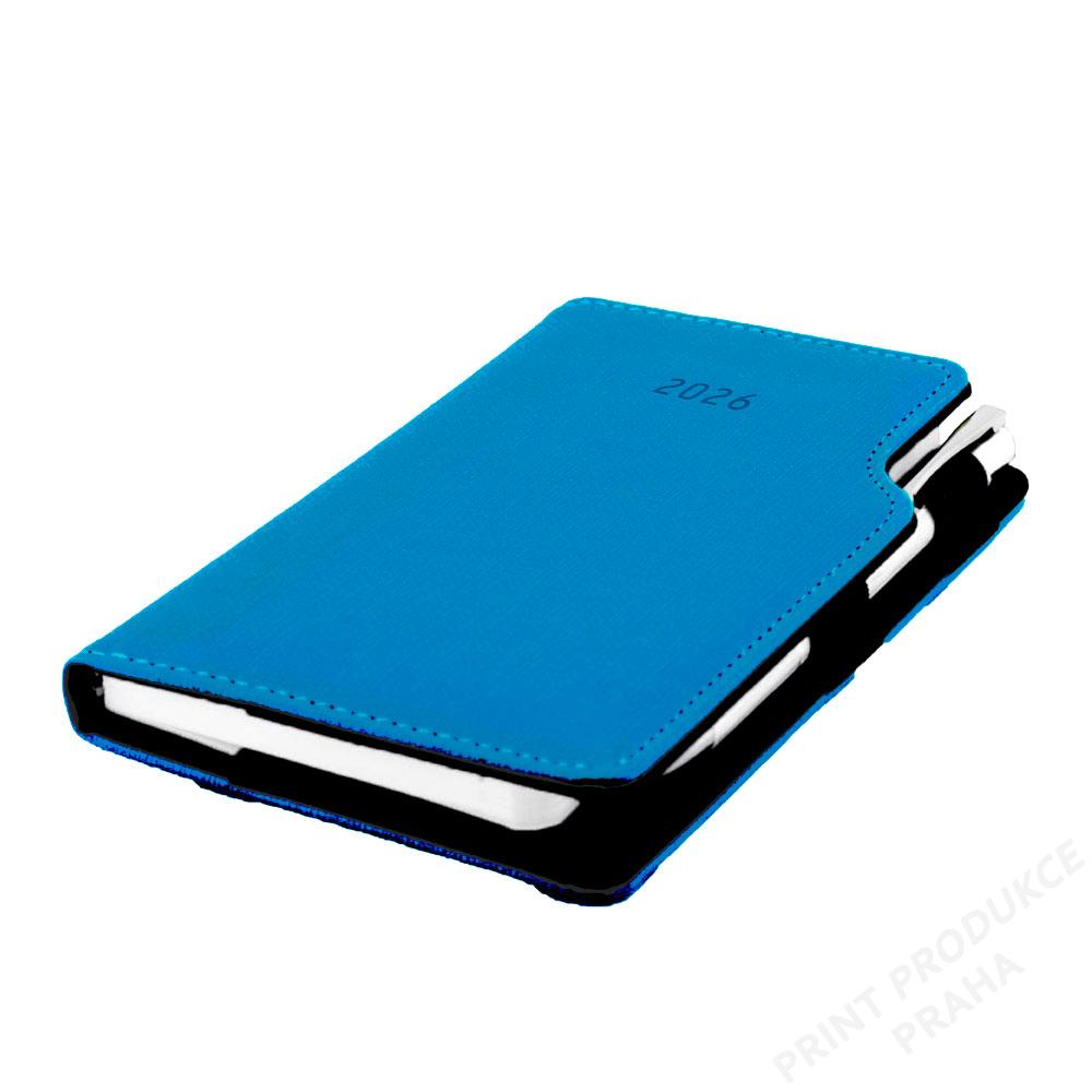 Rozsah: 140 stran - Vazba: šitá V8 (tkaná nit) - Kalendárium: týdenní české jmenné - Jazykové mutace: CZ, SK, EN, DE, RU - Barva bloku: bílá - Barva písma: modrá a červená - Diář obsahuje: kulaté odtrhávací rožky, bílou záložku a propisku - Materiál vnější: pěnová výplň desky potažená matnou strukturovanou koženkou - Materiál vnitřní: černý samet - - Obsah kalendária: znamení zvěrokruhu, přehledný kalendář, - plánovací kalendář 2026, roční plánovací kalendář CZ a SK, - přehled přiznání a plateb daní CZ a SK, mezinárodní tel. spojení, - státní a církevní svátky ve světě, CZ křestní jména, - vzdálenosti v km EU/CZ/SK, plánovací kalendář 2027, - poznámky, časová pásma - - Součástí je sleporažba letopočtu. - Diář je vhodný pro sleporažbu nebo barevnou ražbu.