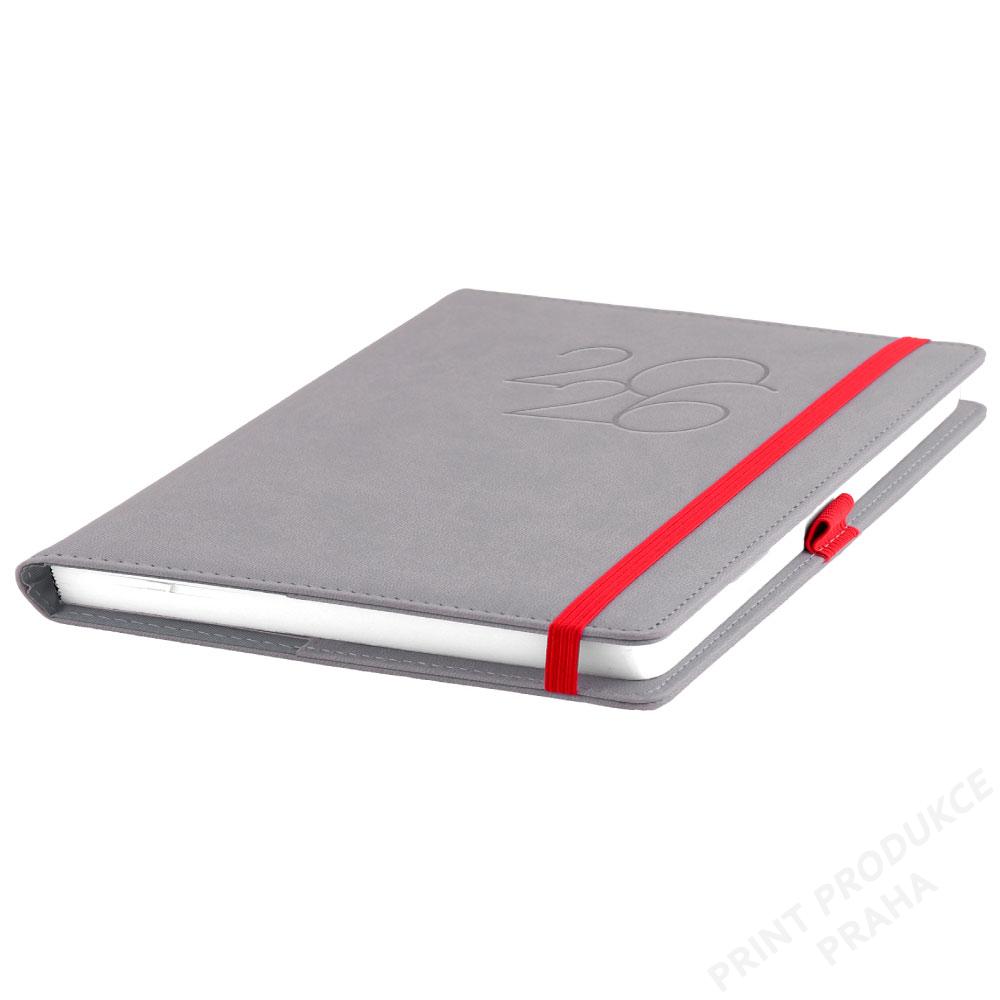 Diář POLY týdenní A5 2026 slovenský - šedá/červená gumička