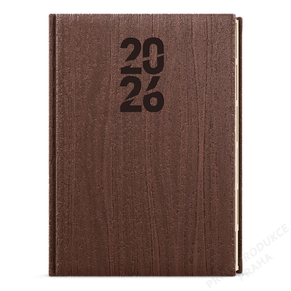 Rozměr: 143 x 205 mm - Formát: A5 - Kalendárium: denní české a slovenské jmenné (SO/NE zvlášť na stránce) - Jazykové mutace: CZ, SK, EN, DE - Potahový materiál: jemně strukturovaný materiál - Papír: krémový s perforovanými rožky - Počet stran: 384 - Vazba: šitá vazba V8 - Záložka: bílá stužka - - Kalendárium obsahuje: - časové rozmezí: 6:00 - 21:30,