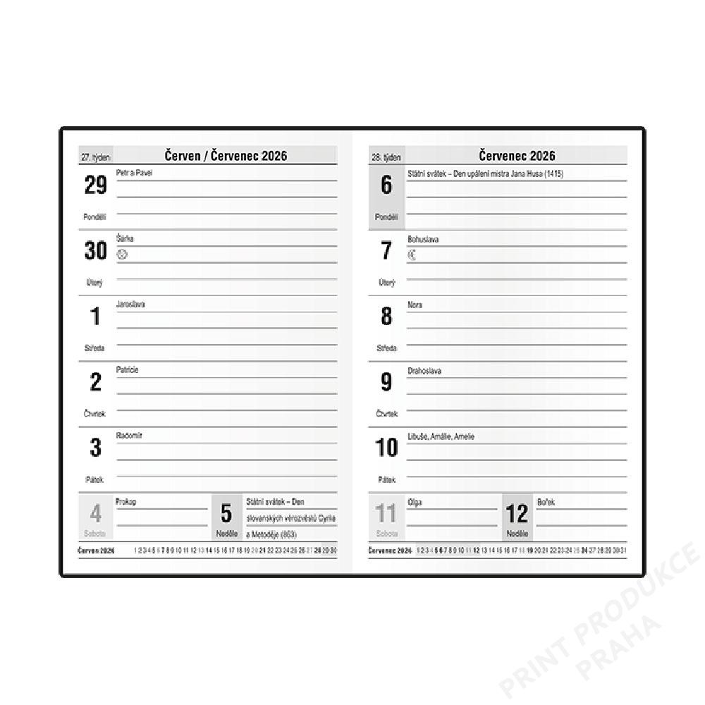 Týdenní diář 2026 Gustav PVC kapesní - černá