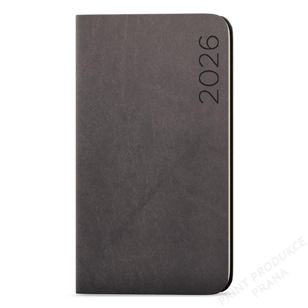 Papír: bílý s perforovanými rožky, kulaté rohy - Počet stran: 128 - Vazba: šitá V8 - Záložka: bílá stužka - - Kalendárium obsahuje: - měsíční fáze, roční období, letní a zimní čas, - znamení zvěrokruhu, řádkový přehled 2 měsíců, - - Informační stránky obsahují: - osobní údaje, přehledný kalendář 2026 a 2027, - měsíční plánování 2026, plán dovolených 2026, - CZ/SK křestní jména, mezinárodní svátky 2026, - roční plánovací kalendář CZ, místo na poznámky. - - Součástí je ražba roku. - Vhodný pro ražbu a potisk.
