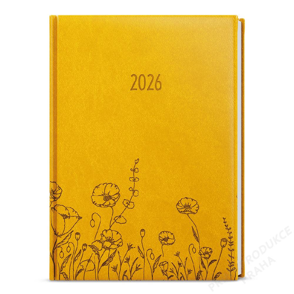 Rozměr: 143 x 205 mm - Formát: A5 - Kalendárium: týdenní české a slovenské jmenné - Jazykové mutace: CZ, SK, EN, DE - Potahový materiál: jemný hladký materiál - Papír: bílý s perforovanými rožky - Počet stran: 144 - Vazba: šitá vazba V8 - Záložka: bílá stužka - Přední předsádka: mapa ČR + SR - Zadní předsádka: vlepená kapsa - - Kalendárium obsahuje: - časové rozmezí: 6:00 - 21:30 (po 30 min.), - měsíční fáze, roční období, letní a zimní čas, - znamení zvěrokruhu, odpočet dnů, měsíční tabulkový přehled - - Informační stránky obsahují: - osobní údaje, přehledný kalendář 2026 a 2027,