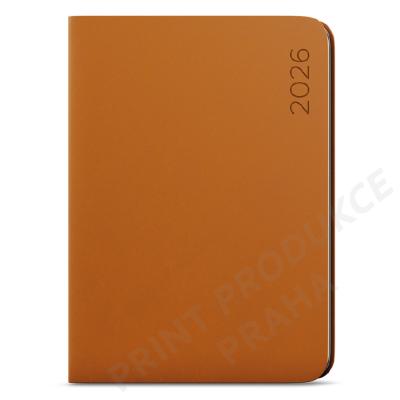 Rozměr: 143 x 205 mm - Formát: A5 - Kalendárium: týdenní české a slovenské jmenné - Jazykové mutace: CZ, SK, EN, DE - Potahový materiál: jemný - imitace semiše - Papír: bílý s perforovanými rožky - - kulaté rohy - Počet stran: 144 - Vazba: šitá vazba V8 - Záložka: bílá stužka - Přední předsádka: mapa ČR + SR - Zadní předsádka: vlepená kapsa - - Kalendárium obsahuje: - časové rozmezí: 6:00 - 21:30 (po 30 min.), - měsíční fáze, roční období, letní a zimní čas, - znamení zvěrokruhu, odpočet dnů, měsíční tabulkový přehled - - Informační stránky obsahují: - osobní údaje, přehledný kalendář 2026 a 2027, - měsíční plánování 2026, plán dovolených 2026, - přehled státních svátků a významných dnů CZ/SK, - CZ/SK křestní jména, daňový kalendář CZ/SK 2026, - mezinárodní svátky 2026, důležitá telefonní čísla, - roční plánovací kalendář CZ/SK, místo na poznámky. - - Součástí je ražba roku a gumička na zavírání. - Vhodný pro ražbu a potisk.