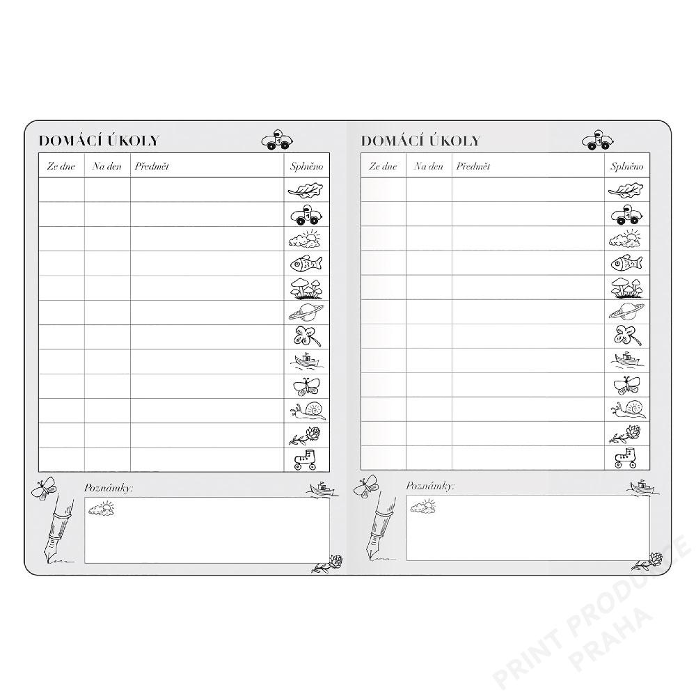 Školní zápisník pro zapsání poznámek a domácích úkolů.