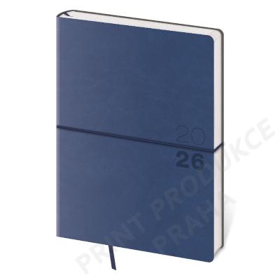 Rozměr: 145 x 205 mm - Formát: A5 - Kalendárium: týdenní české/slovenské - Počet stran: 128 - Barva bloku: bílá - Vazba: V8 (ohebný) - Potahový materiál: matná koženka - - Obsahuje: osobní údaje, plánovač dovolené (měsíční přehled), - plánovací kalendář, telefonní předvolby, státní svátky ČR/SR, - mezinárodní svátky, roční výhled, týdenní layout, adresář, - mapa Evropy, České a Slovenské republiky. - - Součástí je kulatá gumička na zavření. - Vhodný pro sleporažbu.
