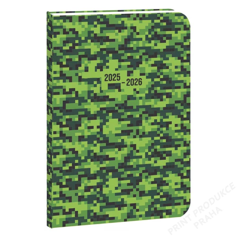 Rozměr: 100 x 150 mm - Formát: kapesní - Kalendárium: týdenní české jmenné - Počet stran: 128 - Barva bloku: krémová - Vazba: V8 - Potahový materiál: matné lamino - - Obsahuje: rozvrh hodin, adresář, přehled prázdnin, poznámky, - užitečné informace z předmětů matematika, chemie, - fyzika, český jazyk, angličtina