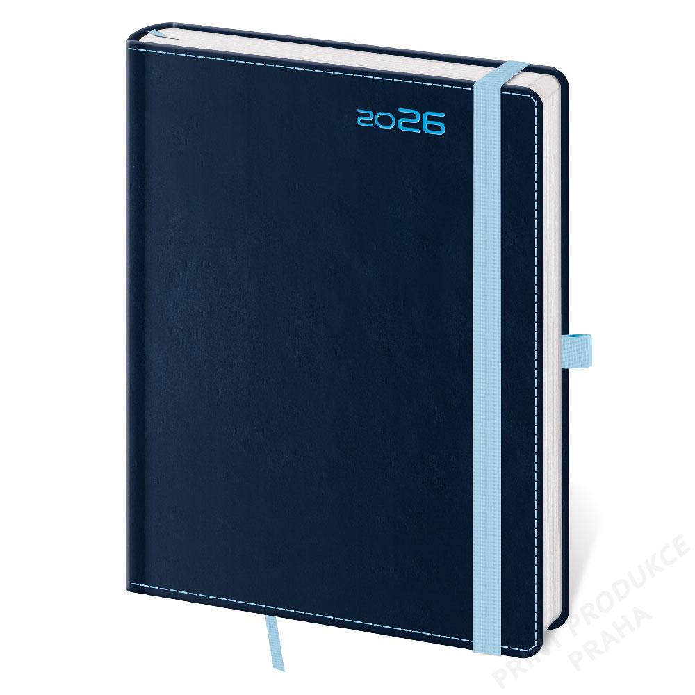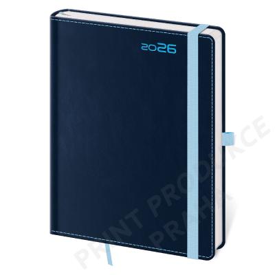 Rozměr: 145 x 205 mm - Formát: A5 - Kalendárium: týdenní české/slovenské - Počet stran: 128 - Barva bloku: bílá - Vazba: V8 - Potahový materiál: matný zušlechtěný papír bez struktury - - Obsahuje: osobní údaje, plánovač dovolené (měsíční přehled), - plánovací kalendář, telefonní předvolby, státní svátky ČR/SR, - mezinárodní svátky, roční výhled, týdenní layout, adresář, - mapa Evropy, České a Slovenské republiky. - - Součástí je poutko na propisku a gumička na zavírání. - Vhodný pro potisk.
