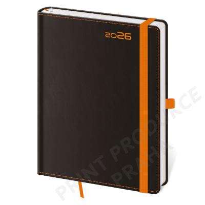Rozměr: 145 x 205 mm - Formát: A5 - Kalendárium: týdenní české/slovenské - Počet stran: 128 - Barva bloku: bílá - Vazba: V8 - Potahový materiál: matný zušlechtěný papír bez struktury - - Obsahuje: osobní údaje, plánovač dovolené (měsíční přehled), - plánovací kalendář, telefonní předvolby, státní svátky ČR/SR, - mezinárodní svátky, roční výhled, týdenní layout, adresář, - mapa Evropy, České a Slovenské republiky. - - Součástí je poutko na propisku a gumička na zavírání. - Vhodný pro potisk.