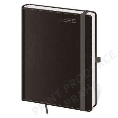 Rozměr: 145 x 205 mm - Formát: A5 - Kalendárium: týdenní české/slovenské - Počet stran: 128 - Barva bloku: bílá - Vazba: V8 - Potahový materiál: matný zušlechtěný papír bez struktury - - Obsahuje: osobní údaje, plánovač dovolené (měsíční přehled), - plánovací kalendář, telefonní předvolby, státní svátky ČR/SR, - mezinárodní svátky, roční výhled, týdenní layout, adresář, - mapa Evropy, České a Slovenské republiky. - - Součástí je poutko na propisku a gumička na zavírání. - Vhodný pro potisk.