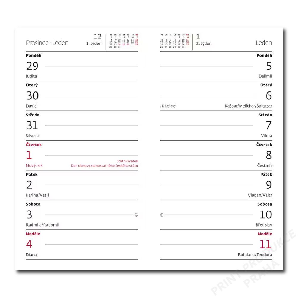 Rozměr: 8,5 x 15,4 cm - Kalendárium: české čtrnáctidenní jmenné - Počet stran: 80 stran - Materiál: PVC