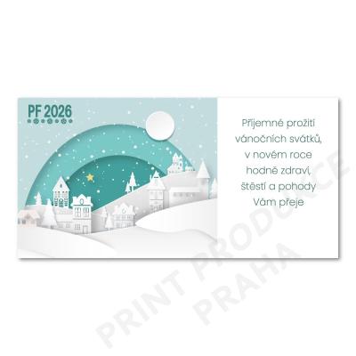 PF 2026 - karta s textem - Rozměr: 20 x 10 cm - Minimální objednací množství: 50 ks - Obsahuje text s přáním. - papír 350g/M2 - Součástí balení je také obálka. - - Nabízíme také možnost potisku novoročenky logem Vaší firmy, který je již zahrnut v ceně. - Vaše logo tak na novoročenky natiskneme zcela ZDARMA! - - Do 249 ks včetně si však účtujeme jednorázový poplatek za graf. práce a úpravy. - Odhadovaná cena prací je v rozmezí 200-500,- Kč dle náročnosti graf. úprav. - Od 250 ks jsou grafické práce až do počtu třech návrhů také zcela ZDARMA!