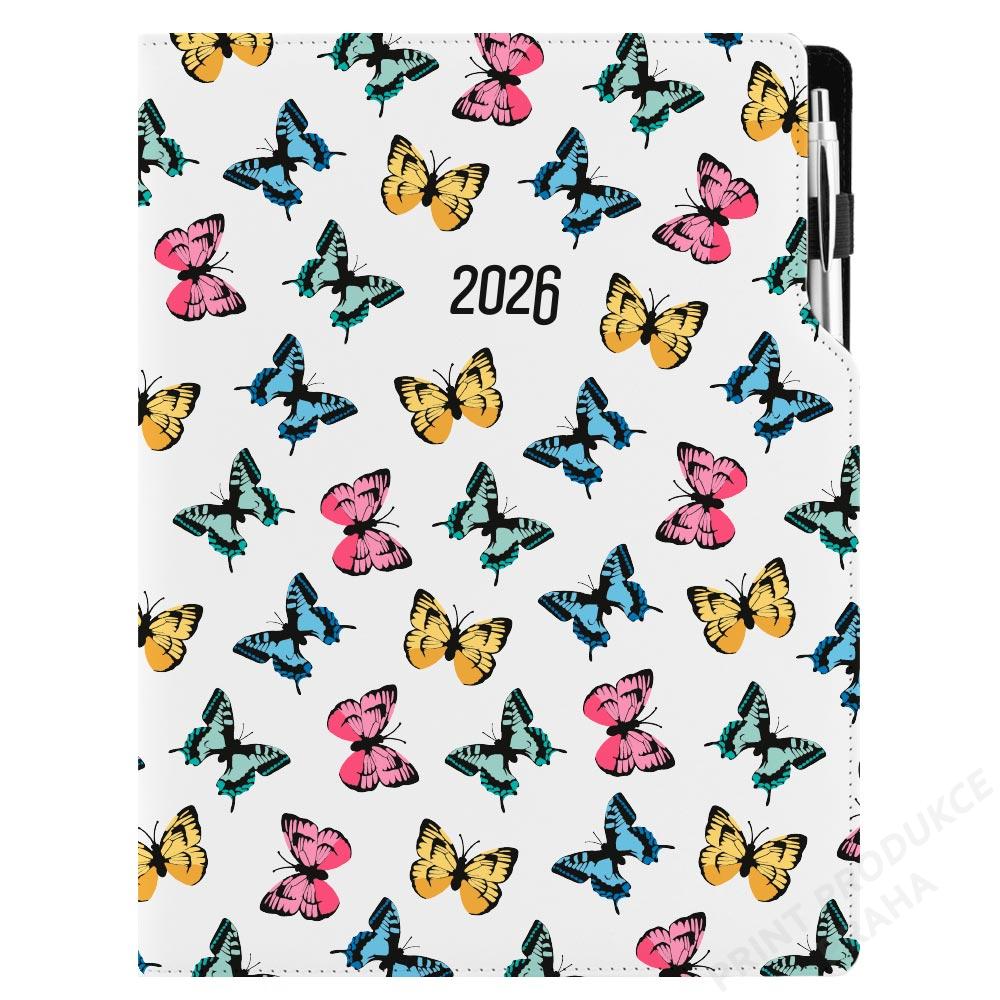 Diář DESIGN týdenní A4 2026 - Motýli barevní