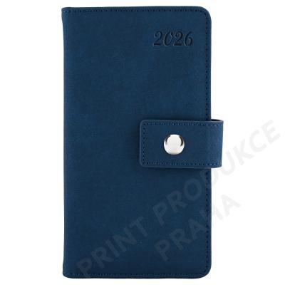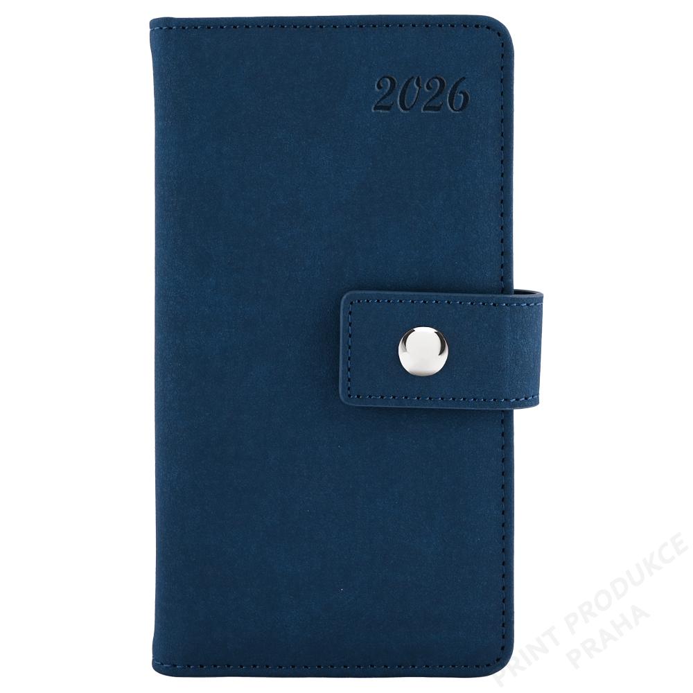Blok vkládaný do desek diáře - Rozsah: 140 stran - Vazba: šitá V8 (tkaná nit) - Kalendárium: týdenní slovenské jmenné - Jazykové mutace: SK, CZ, EN, DE, RU - Barva bloku: bílá - Barva písma: modrá a červená - Potahový materiál: matná koženka - Diář obsahuje: kulaté odtrhávací rožky, - bílou záložku, poutko na propisku a přezku pro zapnutí - - Obsah kalendária: znamení zvěrokruhu, přehledný kalendář, - plánovací kalendář 2026, roční plánovací kalendář SK a CZ, - přehled přiznání a plateb daní SK a CZ, mezinárodní tel. spojení, - státní a církevní svátky ve světě, SK křestní jména, - vzdálenosti v km EU/SK/CZ, plánovací kalendář 2027, - poznámky, časová pásma. - - Diář je vhodný pro sleporažbu a barevnou ražbu.