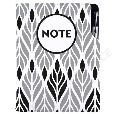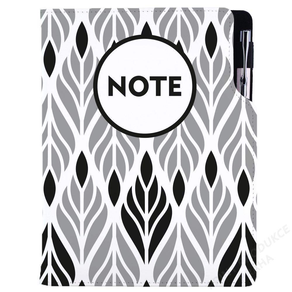 Formát: A5 - Rozměr: 143 x 206 mm - Barva bloku: bílá - Záložka: bílá - Papír: tečkovaný s perforací - Počet stran: 144 - Vazba: šitá V8 (tkaná niť) - Materiál vnější: pěnová výplň desky potažená hladkou koženkou s natištěnou grafikou - Materiál vnitřní: černý samet - - Součástí notesu je poutko na propisku a kovová propiska.
