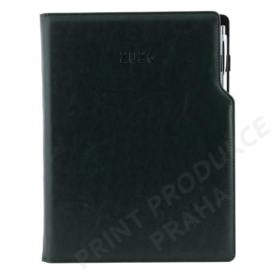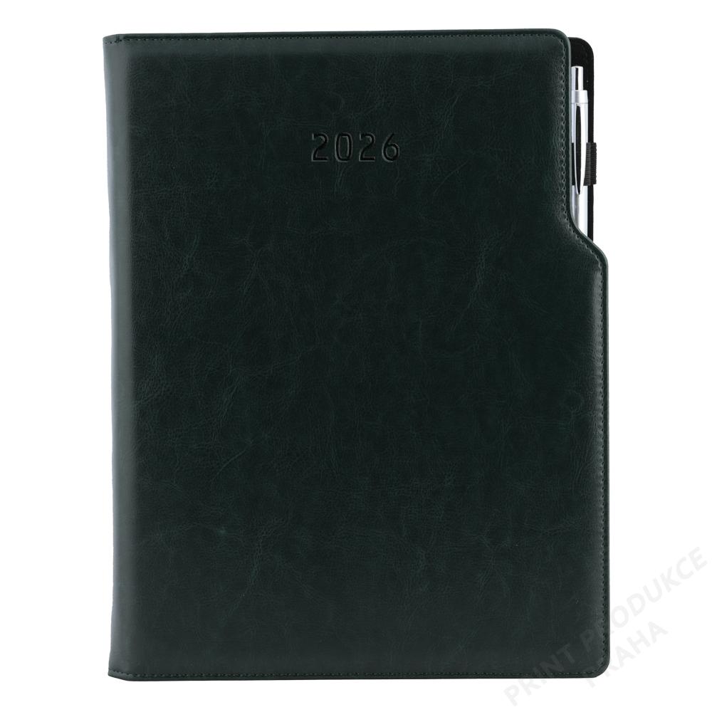 Rozsah: 144 stran - Vazba: šitá V8 (tkaná nit) - Kalendárium: týdenní české a slovenské jmenné - Jazykové mutace: CZ, SK, EN, DE, RU - Barva bloku: bílá - Barva písma: modrá a červená - Diář obsahuje: kulaté odtrhávací rožky, bílou záložku a propisku - Materiál vnější: pěnová výplň desky potažená lesklou hladkou koženkou - Materiál vnitřní: černý samet - - Obsah kalendária: znamení zvěrokruhu, přehledný kalendář, plánovací kalendář 2026, - roční plánovací kalendář CZ a SK, přehled přiznání a plateb daní CZ a SK, - mezinárodní tel. spojení, CZ/SK křestní jména, časová pásma, - státní a církevní svátky ve světě, vzdálenosti v km EU/CZ/SK, - plánovací kalendář 2027, poznámky, mapy - ČR, SK, Praha, Bratislava. - - Součástí je sleporažba letopočtu. - Diář je vhodný pro potisk, sleporažbu, ražbu přes folii nebo barevnou ražbu. - - SOUČÁSTÍ DIÁŘE JE JINÉ KULIČKOVÉ PERO, NEŽ JE VYOBRAZENO NA FOTKÁCH. - KÓD KULIČKOVÉHO PERA - Isabel B0116411PB2