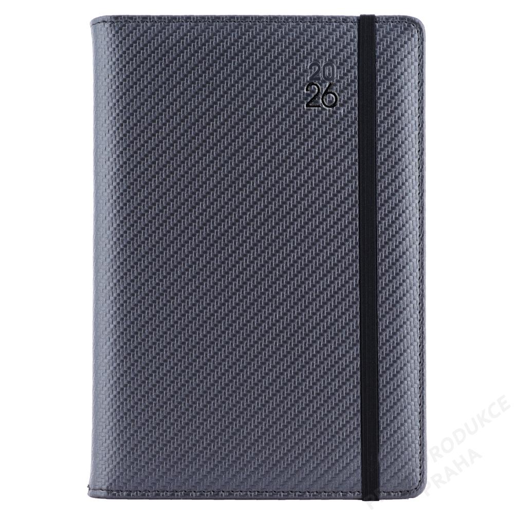 Rozsah: 350 stran - Vazba: šitá V8 (tkaná nit) - Kalendárium: denní české jmenné - Jazykové mutace: CZ, SK, EN, DE, RU - Barva bloku: bílá - Barva písma: modrá a červená - Diář obsahuje: kulaté odtrhávací rožky, bílou záložku, - poutko na propisku a gumičku za zavírání - Materiál: pevné desky potaženy vzorovanou matnou koženkou - - Obsah kalendária: znamení zvěrokruhu, přehledný kalendář, - plánovací kalendář 2026, roční plánovací kalendář CZ a SK, - přehled přiznání a plateb daní CZ a SK, časová pásma, - mezinárodní tel. spojení, CZ křestní jména, poznámky, - státní a církevní svátky ve světě, vzdálenosti v km EU/CZ/SK, - plánovací kalendář 2027, mapy - ČR, SK, Praha, Bratislava. - - Součástí je barevná ražba letopočtu. - Diář je vhodný pro sleporažbu a barevnou ražbu.