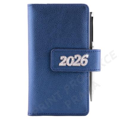 Blok vkládaný do desek diáře - Rozsah: 140 stran - Vazba: šitá V8 (tkaná nit) - Kalendárium: týdenní slovenské jmenné - Jazykové mutace: SK, CZ, EN, DE, RU - Barva bloku: bílá - Barva písma: modrá a červená - Diář obsahuje: kulaté odtrhávací rožky, bílou záložku, - kovovou propisku a magnetické zavírání - Potahový materiál: koženka - - Obsah kalendária: znamení zvěrokruhu, přehledný kalendář, - plánovací kalendář 2026, roční plánovací kalendář SK a CZ, - přehled přiznání a plateb daní SK a CZ, mezinárodní tel. spojení, - státní a církevní svátky ve světě, SK křestní jména, - vzdálenosti v km EU/SK/CZ, plánovací kalendář 2027, - poznámky, časová pásma. - - Šperk letopočtu je vyroben z niklu a v něm jsou vsazeny krystalky. - Diář je balen v dárkové krabičce vystalné saténem.