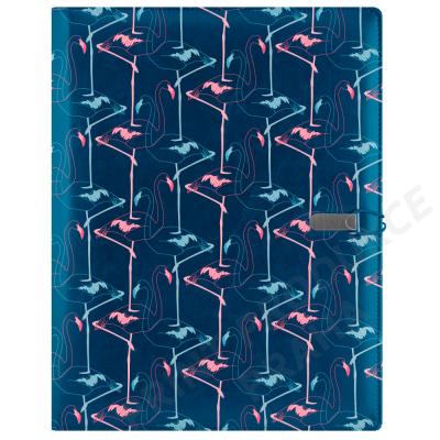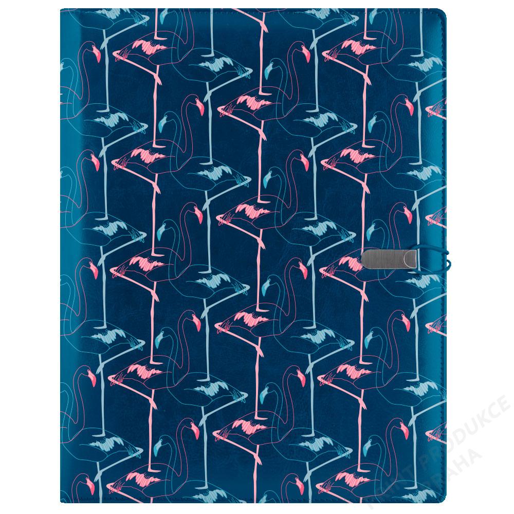 GEP konferenční desky v dárkové krabičce modré - Flamingo s čistým blokem - Tyto desky jsou ideálním pomocníkem k pořizování poznámek. - Jsou vhodné také jako reprezentativní dárek zabalený v luxusní krabičce. - Do desek GEP je možno dokupovat další náhradní bloky. - Jsou vhodné k reklamní ražbě log, k potisku, ke gravírování atd… - Na desky umíme jako jediní na světě i plnobarevnou ražbu. - Jsou vybaveny estetickým zapínáním na gumičku s kovovým štítkem. - Bloky do desek je možno vyrobit na zakázku s grafikou klienta. (od 100 ks) - Propisku můžeme na přání potisknout. - Na zakázku můžeme desky vyrobit i z jiných potahových materiálů a barev. - - - Konferenční desky GEP standardně obsahují: - - Koženkové desky o rozměru 24,5 x 31,5 cm (vnější rozměr) - - čistý A4 s 50 ti stranami - - zapínání na gumičku s kovovým štítkem - - vnitřní přihrádku na dokumenty - - 2 x přihrádku na karty, vizitky aj. - - 2 x poutko na propisku - - luxusní dárkovou krabičku vhodnou k potisku