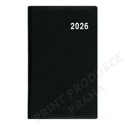 Vazba: šitá vazba V1 - - Kalendárium obsahuje: - roční období, letní a zimní čas, počet dnů - - Informační stránky obsahují: - Osobní záznamy, důležitá telefonní čísla, - tabulkový kalendář 2026, roční plánovací kalendář 2026, - jmenný seznam, adresář, místo na poznámky, - místo na zapsání odjezdů a příjezdů autobusů a vlaků - - Součástí je potisk roku bílou barvou.
