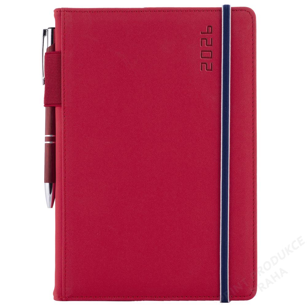 Rozsah: 142 stran - Vazba: šitá V8 (tkaná nit) - Kalendárium: týdenní české jmenné - Jazykové mutace: CZ, SK, EN, DE, RU - Barva bloku: bílá - Barva písma: modrá a červená - Diář obsahuje: kulaté odtrhávací rožky, bílou záložku, - poutko na propisku na hřbetu diáře, propisku a gumičku na zavírání - Materiál: pěnová výplň desky potažená matnou koženkou - - Obsah kalendária: znamení zvěrokruhu, přehledný kalendář, - plánovací kalendář 2026, roční plánovací kalendář CZ a SK, - přehled přiznání a plateb daní CZ a SK, poznámky - mezinárodní tel. spojení, CZ křestní jména, časová pásma, - státní a církevní svátky ve světě, vzdálenosti v km EU/CZ/SK, - plánovací kalendář 2027, mapy - ČR, SK, Praha, Bratislava. - - Součástí je sleporažba letopočtu. - Diář je vhodný pro sleporažbu nebo barevnou ražbu.