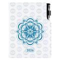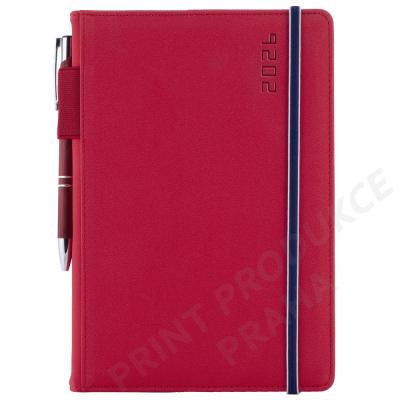 Rozsah: 140 stran - Vazba: šitá V8 (tkaná nit) - Kalendárium: týdenní jmenné CZ/SK na jedné straně + strana na poznámky - Jazyky: CZ, SK, EN, DE, RU - Barva bloku: bílá - Barva písma: modrá a červená - Diář obsahuje: kulaté odtrhávací rožky,bílou záložku, - poutko na propisku na hřbetu diáře, propisku a gumičku na zavírání - Materiál: pěnová výplň desky potažená matnou koženkou - - Obsah kalendária: znamení zvěrokruhu, přehledný kalendář, - plánovací kalendář 2026, roční plánovací kalendář CZ a SK, - přehled přiznání a plateb daní CZ a SK, poznámky - mezinárodní tel. spojení, CZ/SK křestní jména, časová pásma, - státní a církevní svátky ve světě, vzdálenosti v km EU/CZ/SK, - plánovací kalendář 2027, mapy - ČR, SK, Praha, Bratislava. - - Součástí je sleporažba letopočtu. - Diář je vhodný pro sleporažbu, barevnou ražbu.