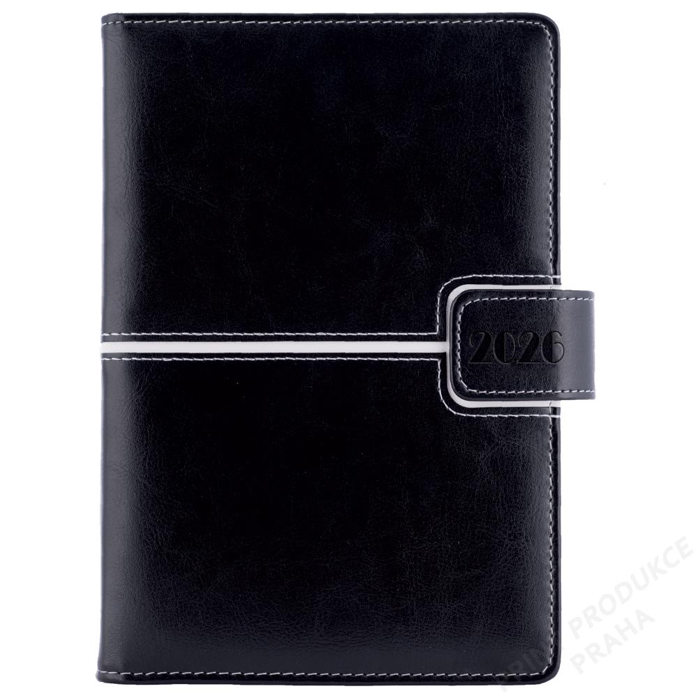 Rozsah: 352 stran - Vazba: šitá V8 (tkaná nit) - Kalendárium: denní české a slovenské jmenné - Jazyky: CZ, SK, EN, DE, RU - Barva bloku: bílá - Barva písma: modrá a červená - Diář obsahuje: kulaté odtrhávací rožky,bílou záložku, - poutko na propisku a magnetické zavírání - Materiál vnější: pěnová výplň desky potažená hladkou koženkou