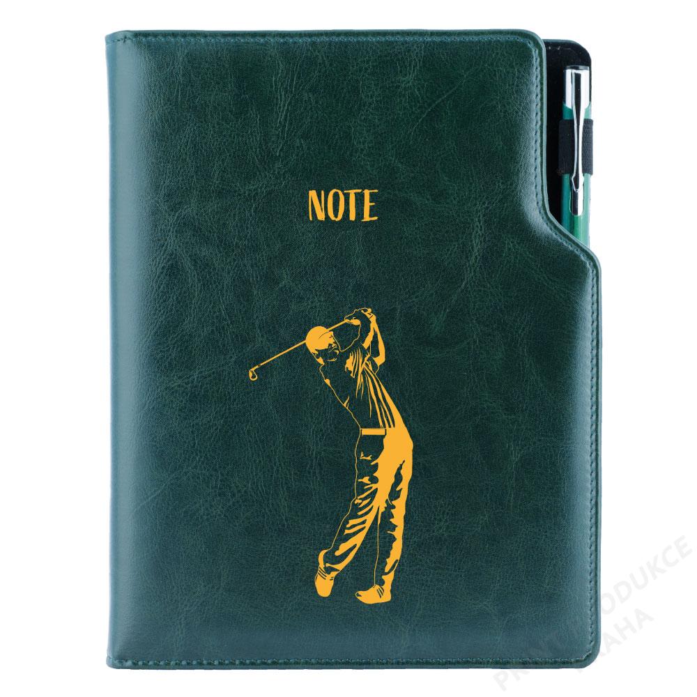 Notes - zápisník DESIGN A5 čtverečkovaný - zelená - Golf muž