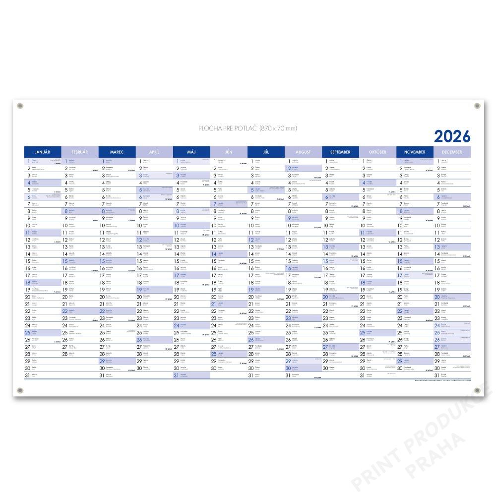 Rozměr: 100 x 63 cm - Barva: modrá - Materiál: omyvatelné PVC - banerovina - Kalendárium: slovenské roční jmenné - Rozsah: 1 list - Na tento kalendář poskytujeme zdarma potisk loga. (od 10ks)
