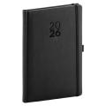 Rozsah: 140 stran - Vazba: šitá V8 (tkaná nit) - Kalendárium: týdenní jmenné CZ/SK na jedné straně + strana na poznámky - Jazyky: CZ, SK, EN, DE, RU - Barva bloku: bílá - Barva písma: modrá a červená - Diář obsahuje: kulaté odtrhávací rožky,bílou záložku, - kovovou propisku a magnetické zavírání - Potahový materiál: koženka - - Obsah kalendária: znamení zvěrokruhu, přehledný kalendář, - plánovací kalendář 2026, roční plánovací kalendář CZ a SK, - přehled přiznání a plateb daní CZ a SK, časová pásma, - mezinárodní tel. spojení, CZ/SK křestní jména, poznámky, - státní a církevní svátky ve světě, vzdálenosti v km EU/CZ/SK, - plánovací kalendář 2027, mapy - ČR, SK, Praha, Bratislava. - - Šperk letopočtu je vyroben z niklu a v něm jsou vsazeny krystalky. - Diář je balen v dárkové krabičce vystlané saténem.