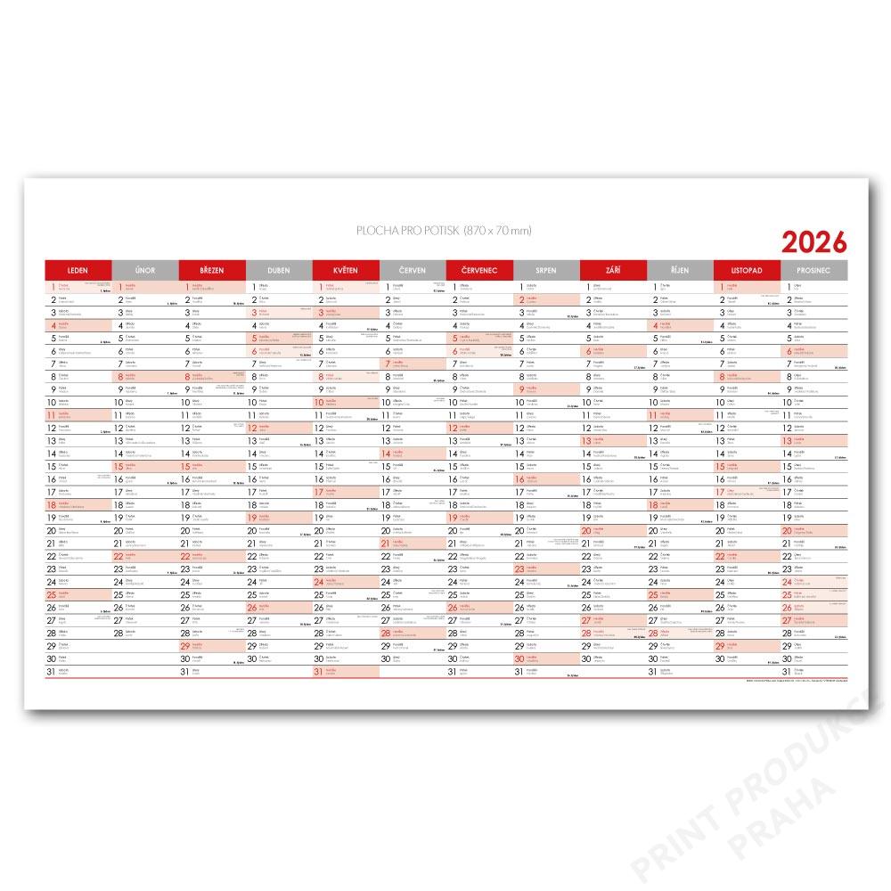 Nástěnný kalendář Plánovací mapa 2026 CZ - 100 x 63 cm - červená