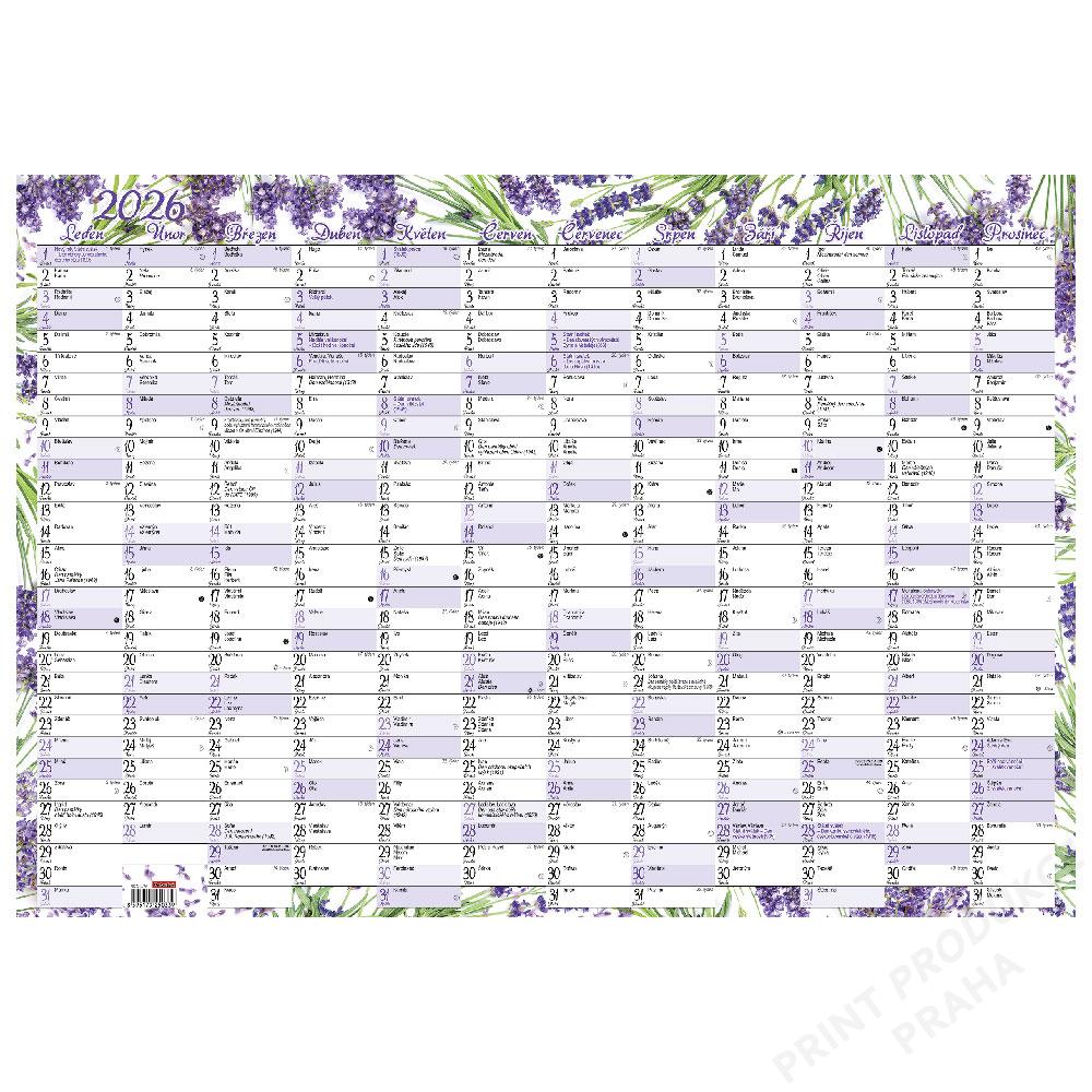 Rozměr: 600 x 420 mm - Formát: A2 - Kalendárium: české roční jmenné kalendárium - Rozsah kalendáře: 1 list - Balení složeno na formát A4 - 300x210 mm - Obsahuje měsíční fáze, roční období, letní a zimní čas.