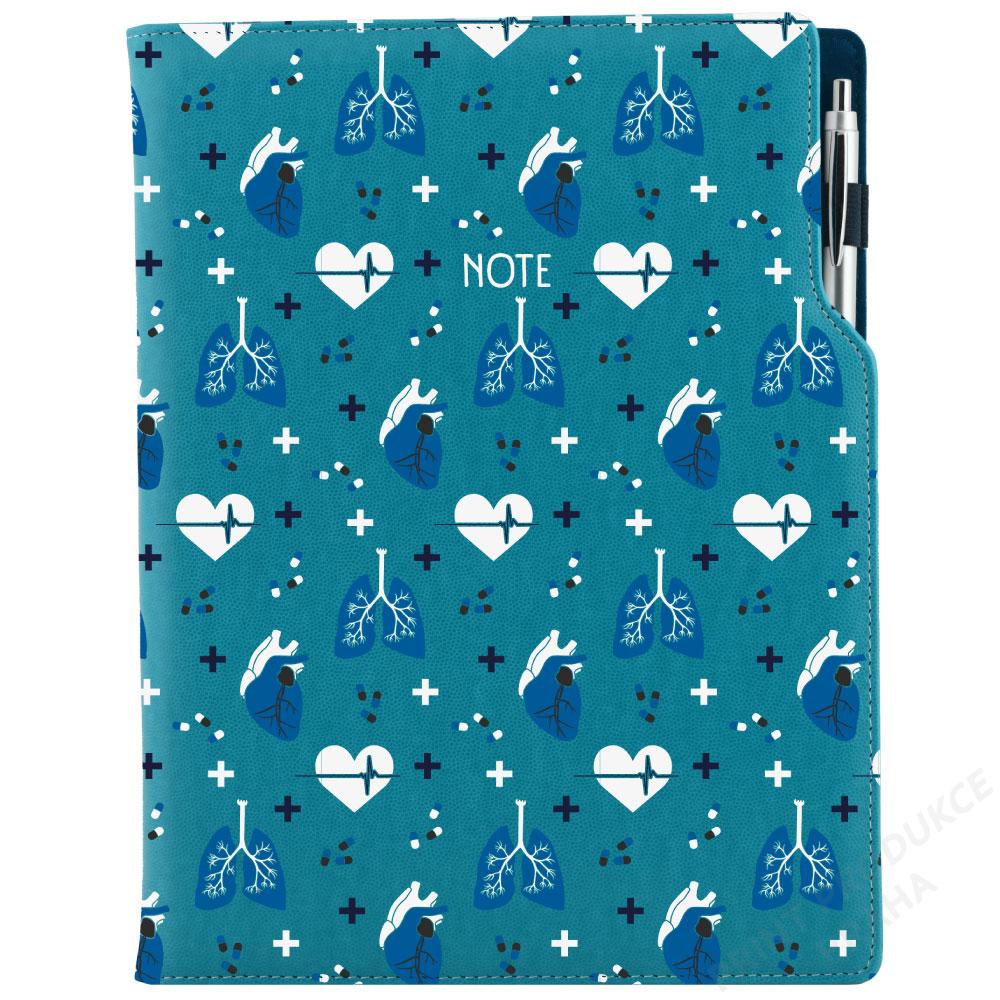 Notes - zápisník DESIGN A4 čtverečkovaný - tyrkysová - Doktor - srdce